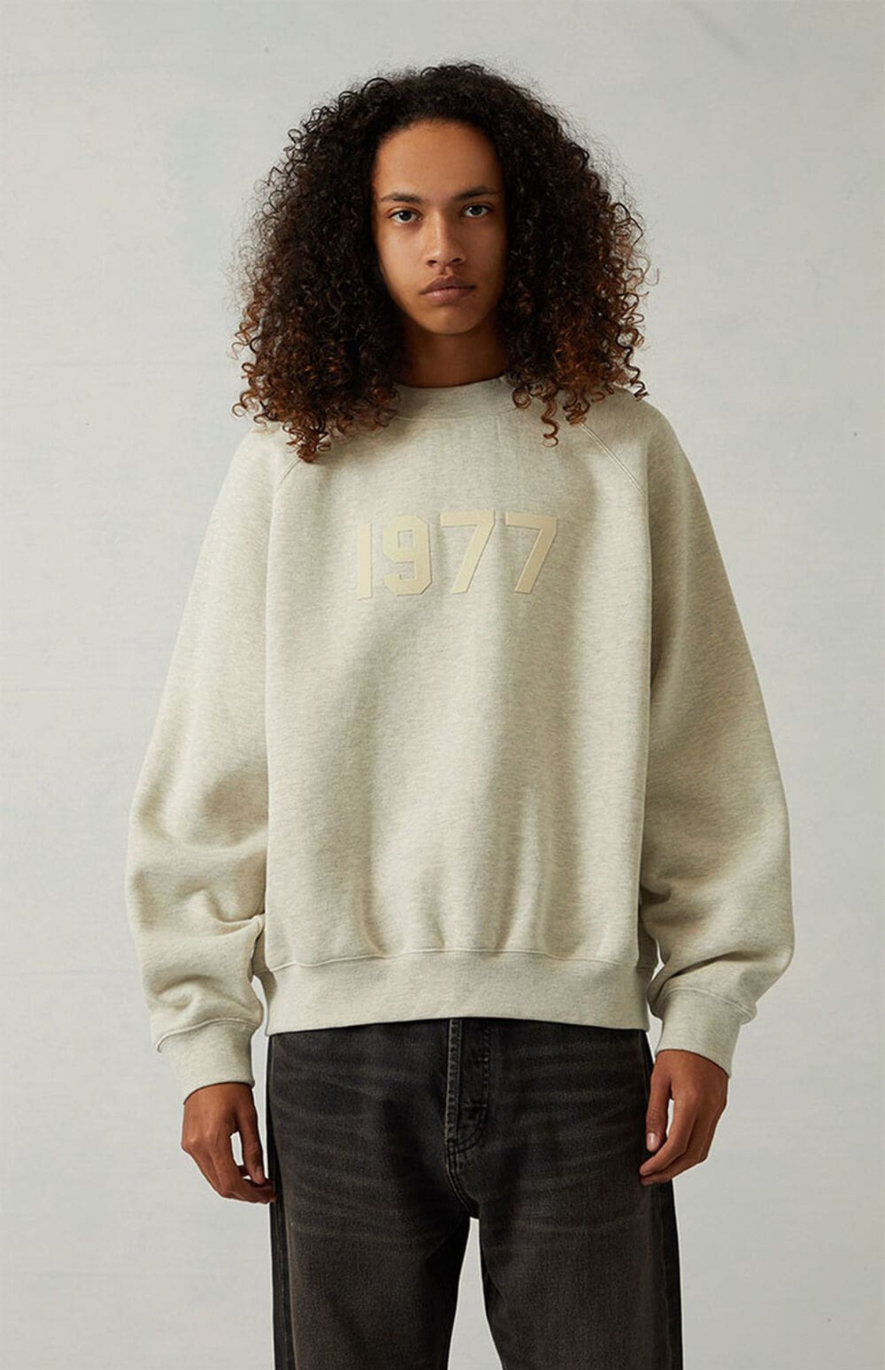 Home>Fear 0f God (Essentials)>Hoodie & Sweatshirt>[Big & Tall for weights up to 220 lbs]1:1 quality version 3D Flocked 1977 Digital Crewneck Pullover Sweatshirt 4 colors 28491693