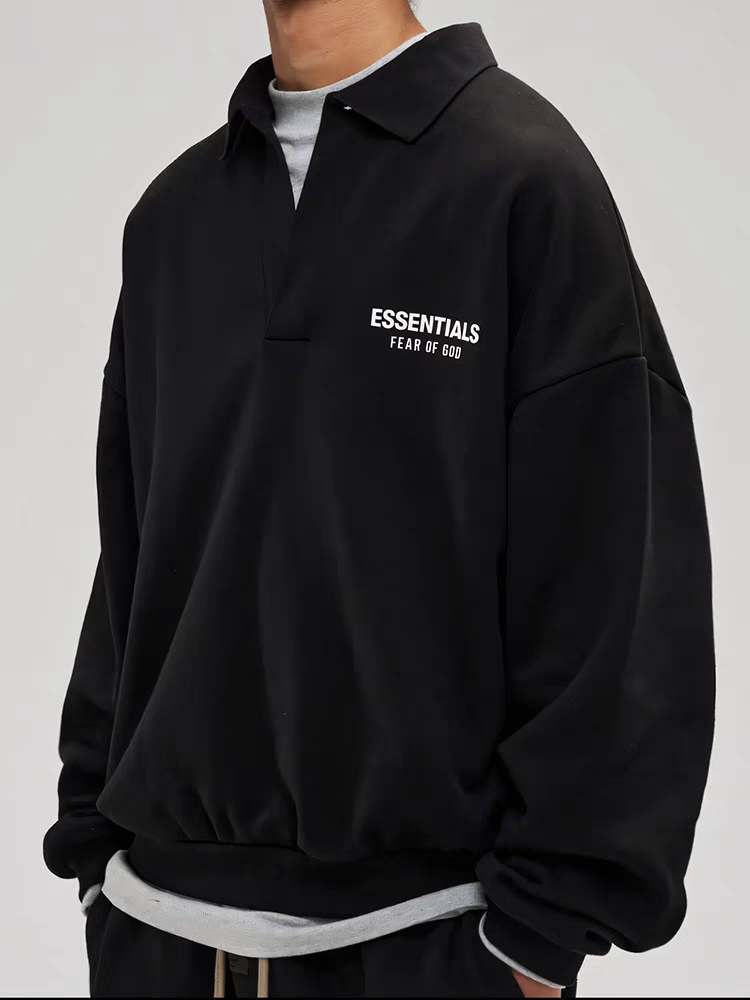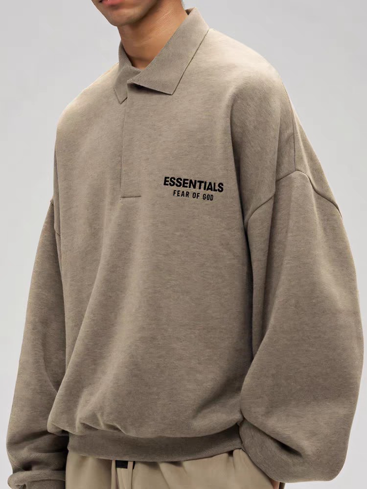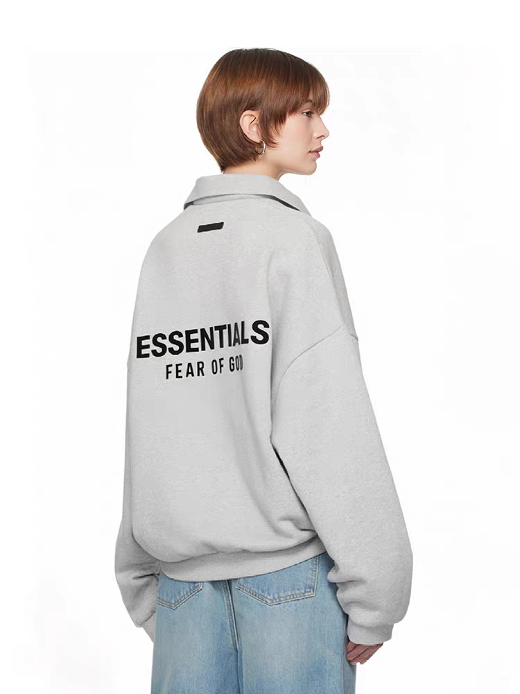 Home>Fear 0f God (Essentials)>Hoodie & Sweatshirt>[Big & Tall for weights up to 220 lbs]1:1 quality version Silicone Letter Lapel Holiday Core Fleece Polo Hoodie 3 colors 28496740