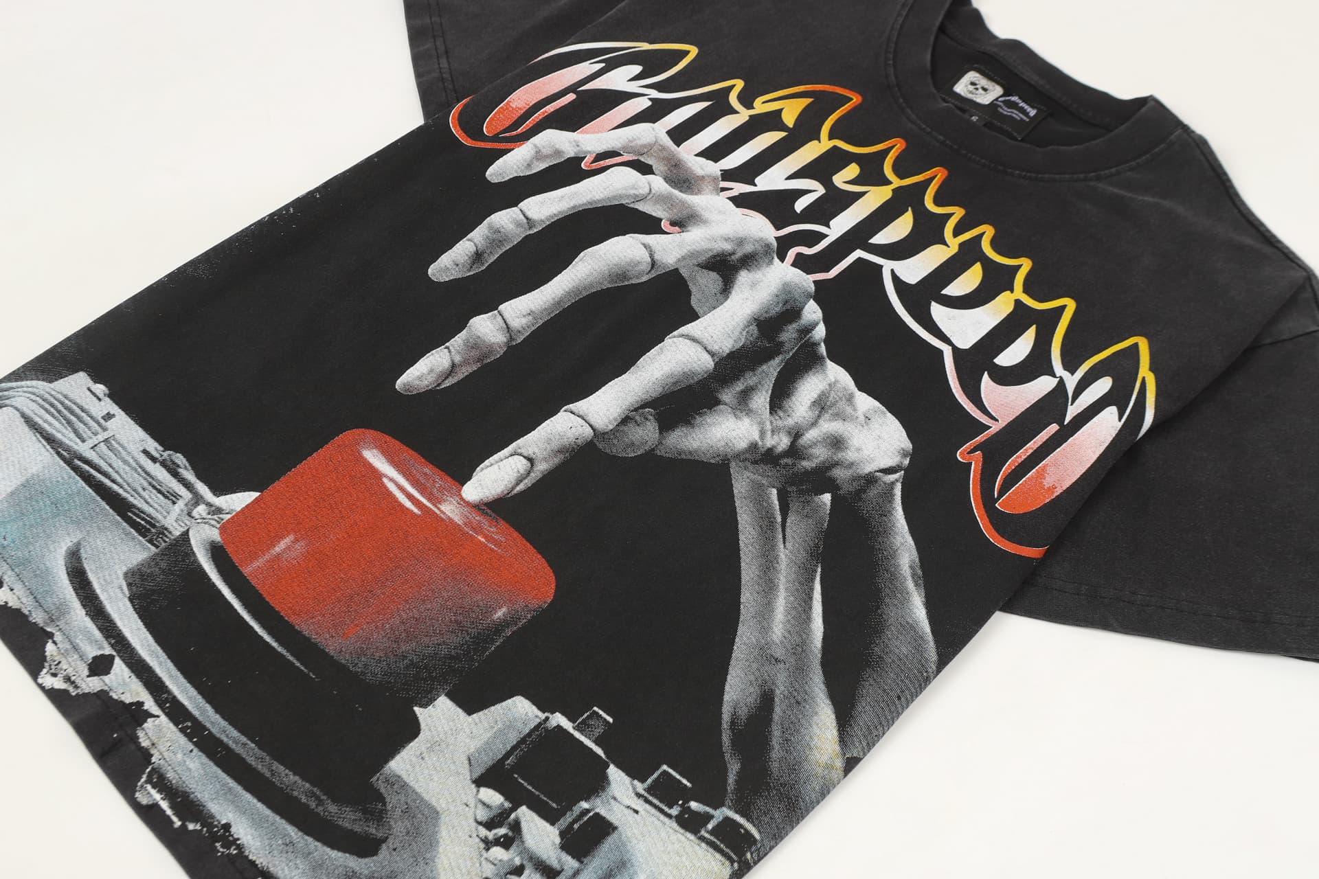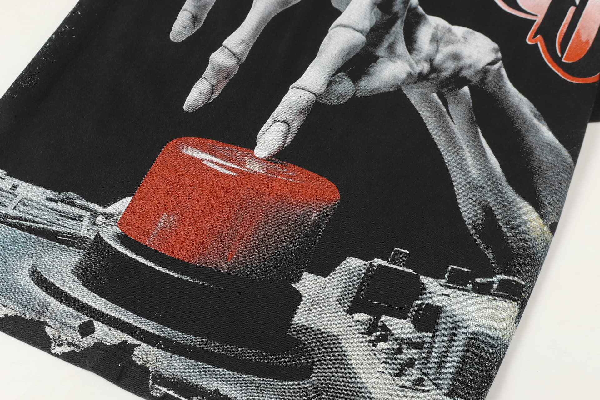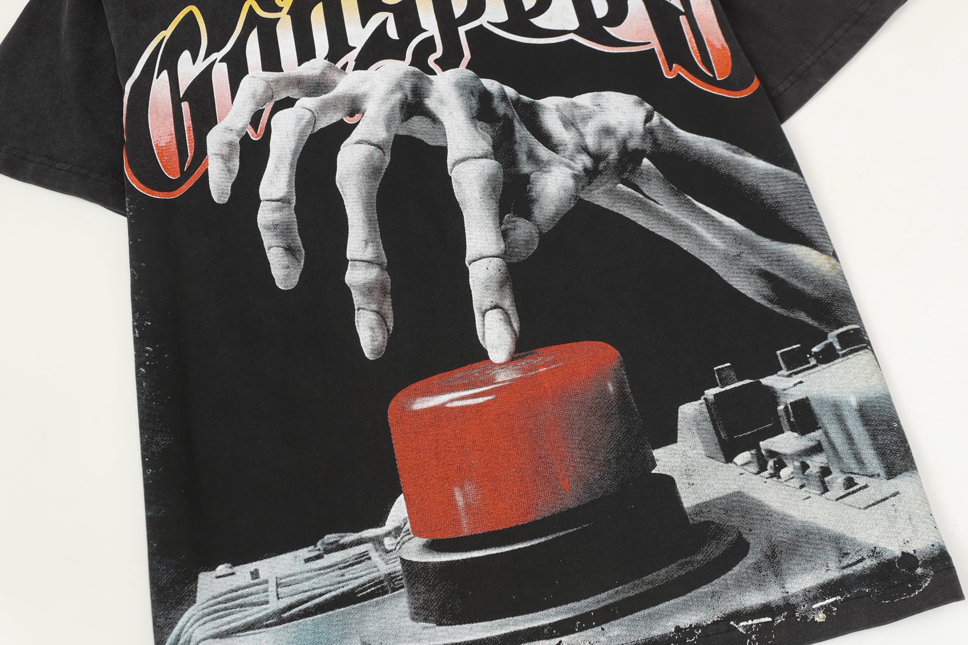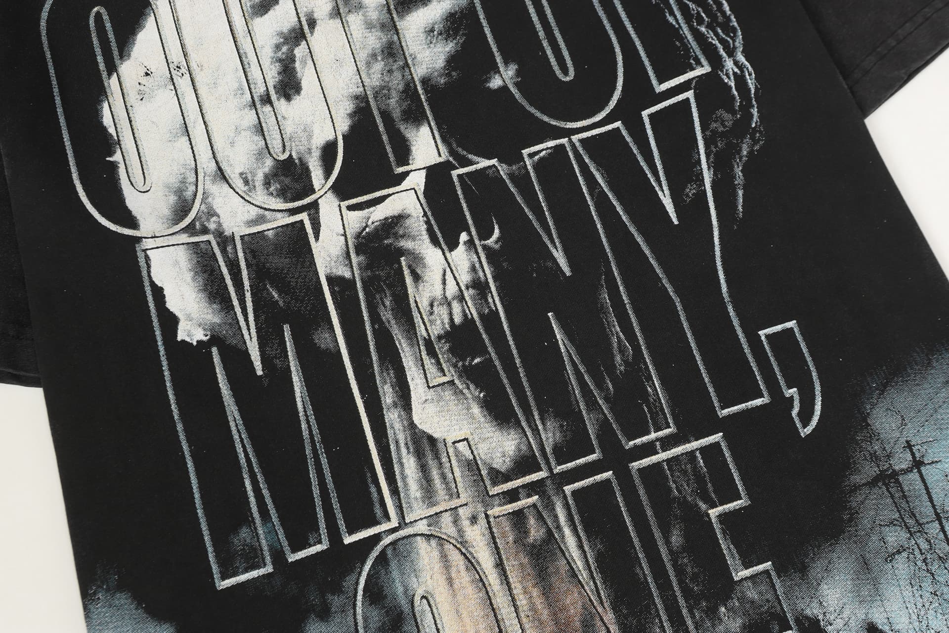 Home>Godspeed>T-shirt>[Buy Two Get One Free]Skull Presses War Initiation Button Printed Washed Version Tee 2 colors 28499577