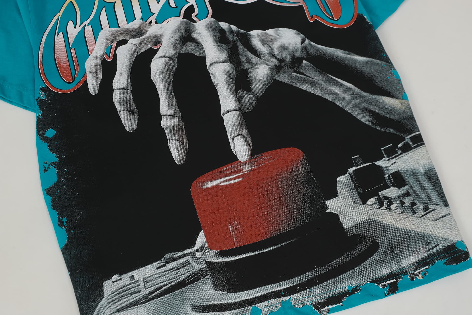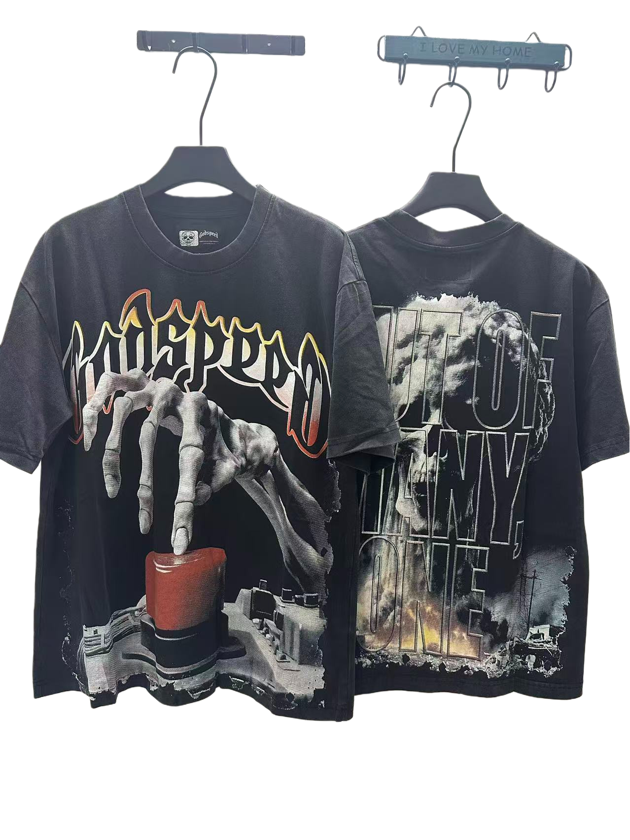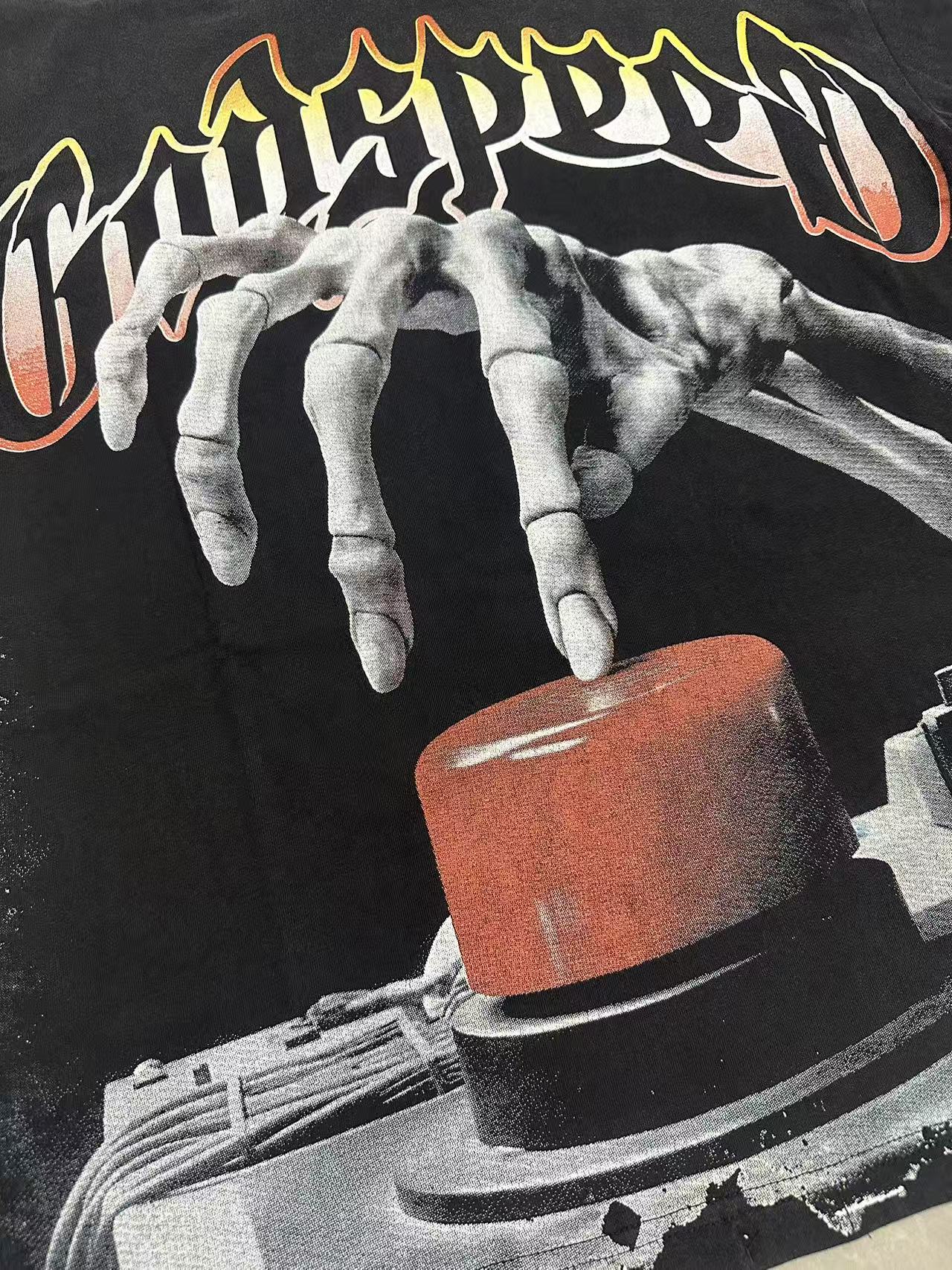 Home>Godspeed>T-shirt>[Buy Two Get One Free]Skull Presses War Initiation Button Printed Washed Version Tee 2 colors 28499577