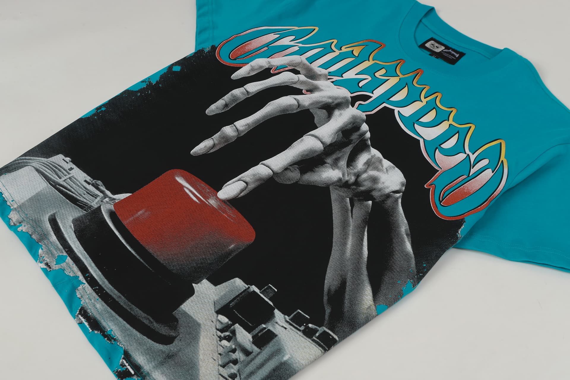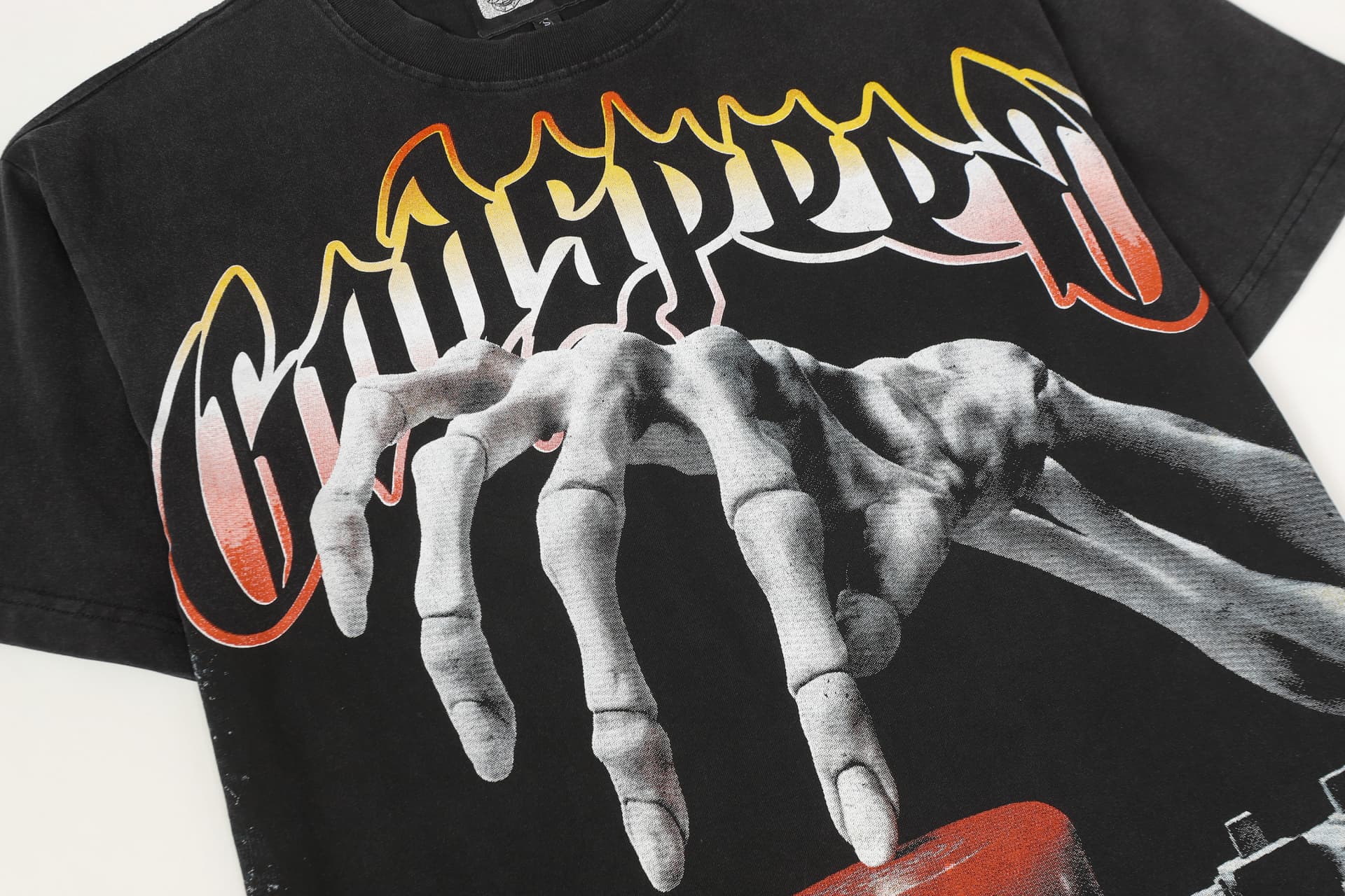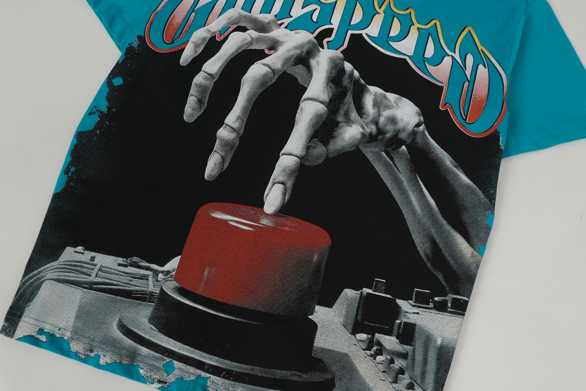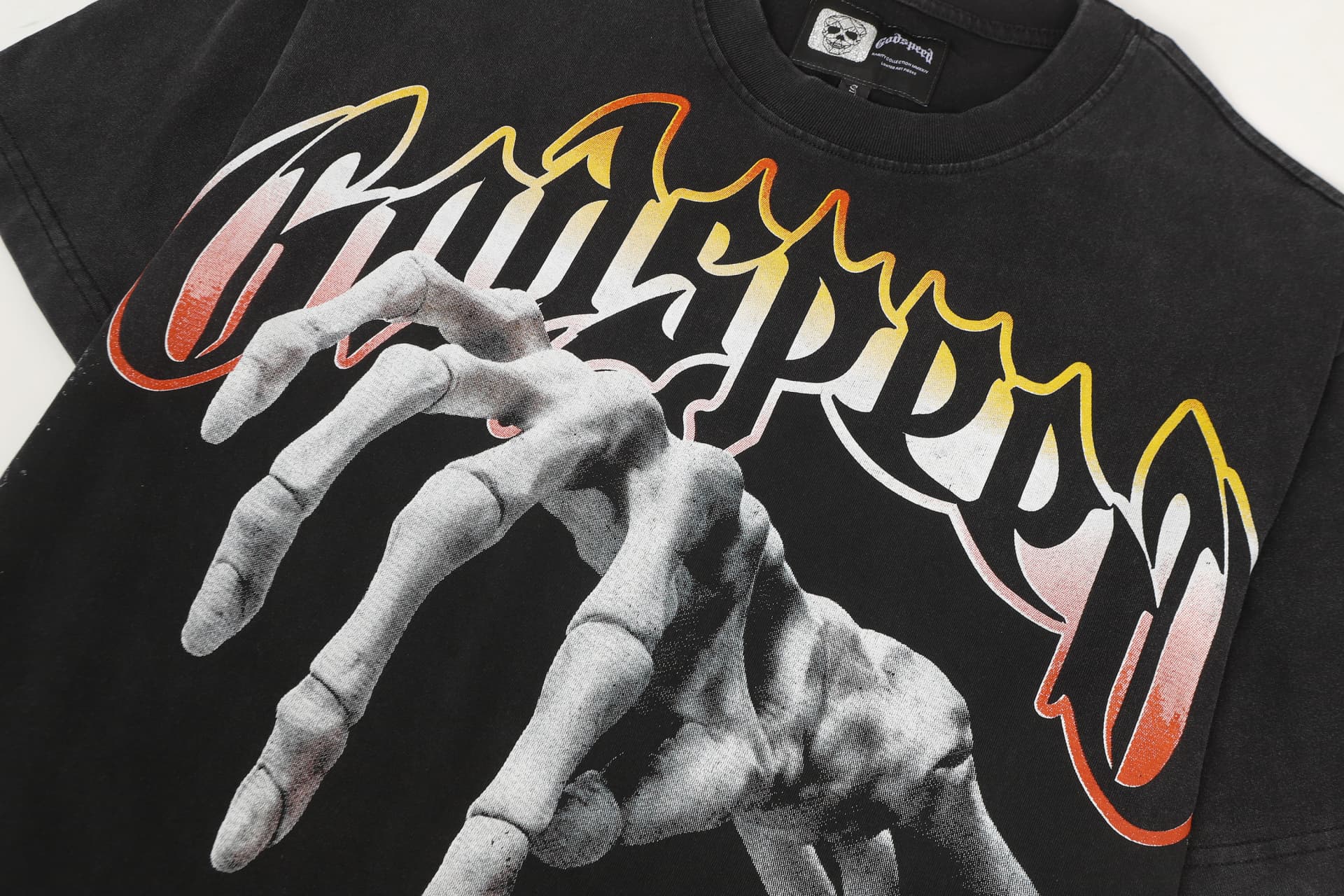Home>Godspeed>T-shirt>[Buy Two Get One Free]Skull Presses War Initiation Button Printed Washed Version Tee 2 colors 28499577
