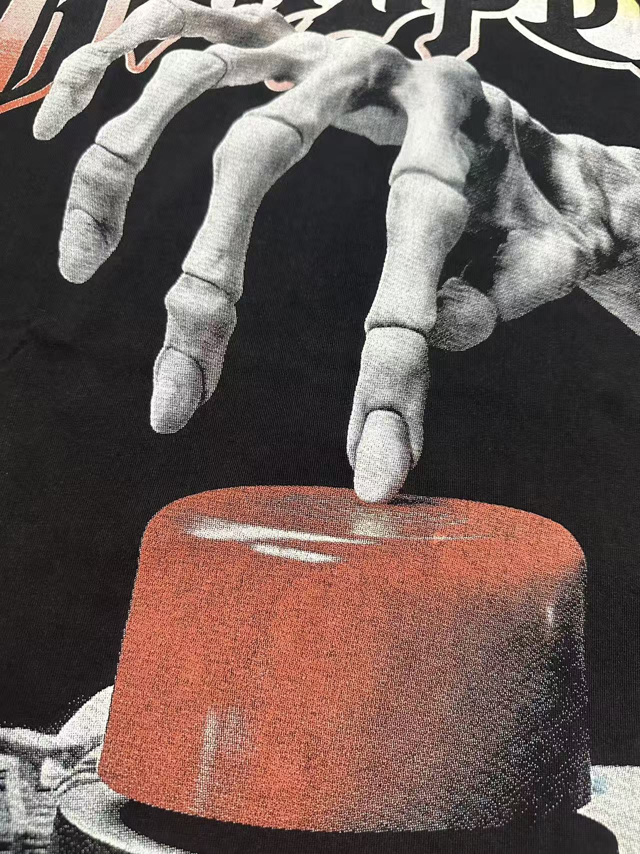 [Buy Two Get One Free]Skull Presses War Initiation Button Printed Washed Version Tee 2 colors 28499577