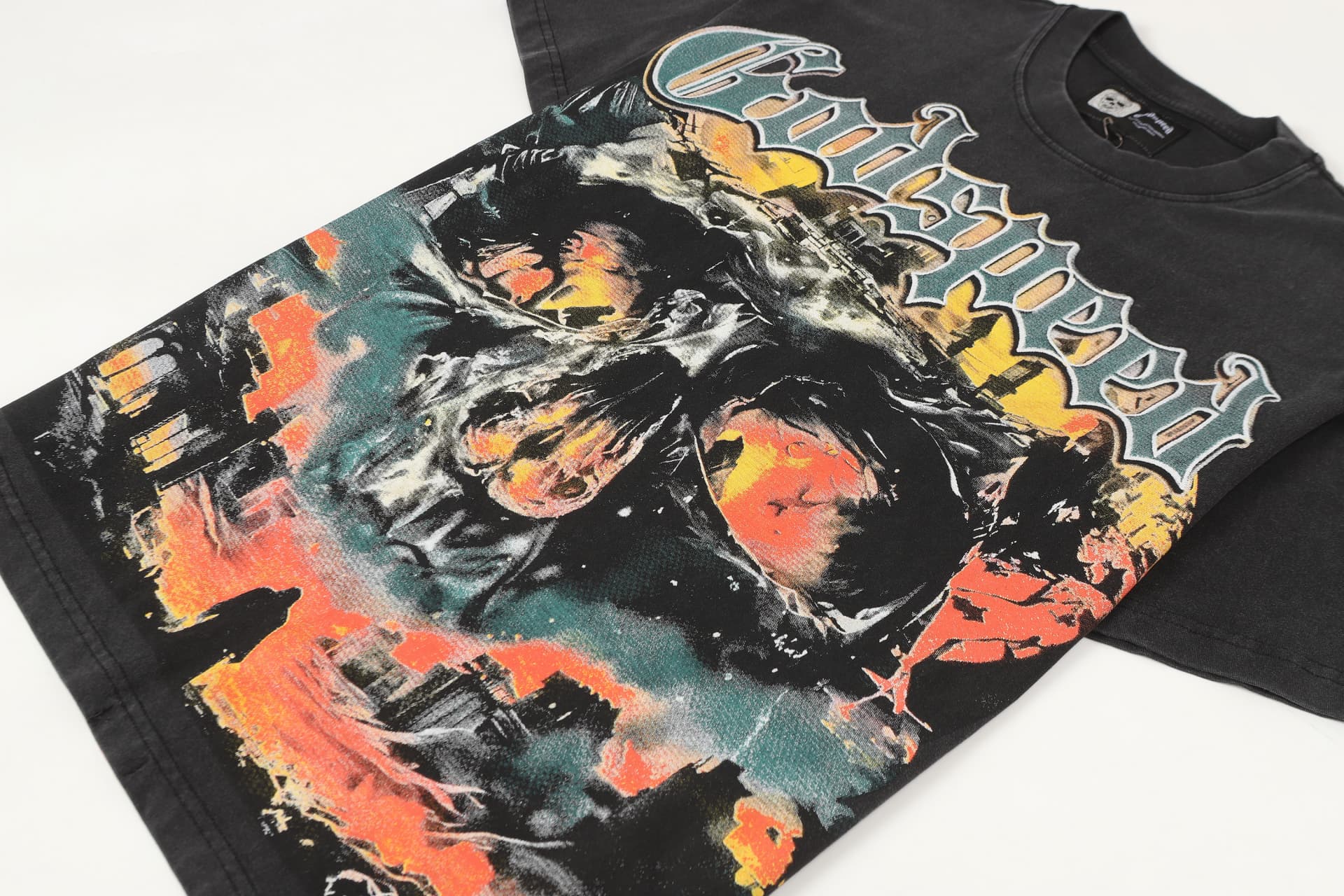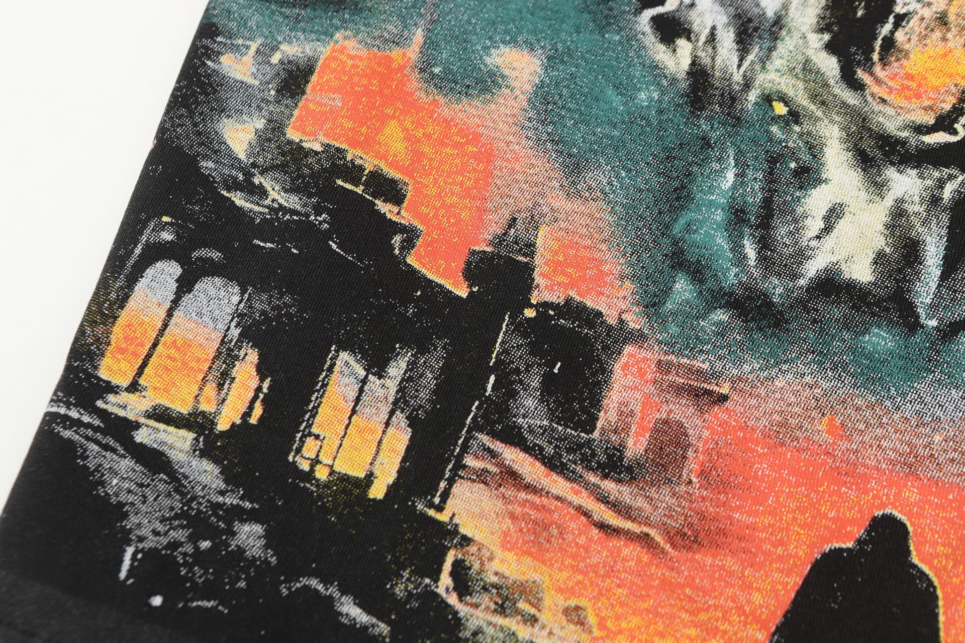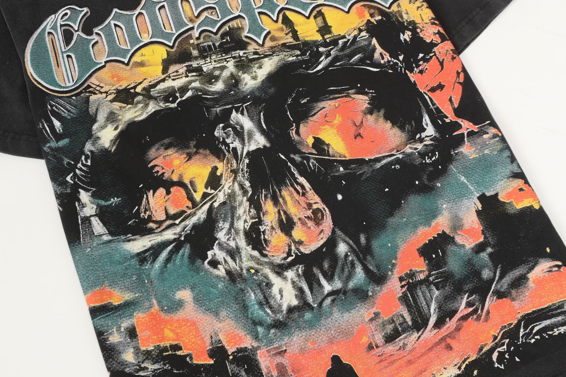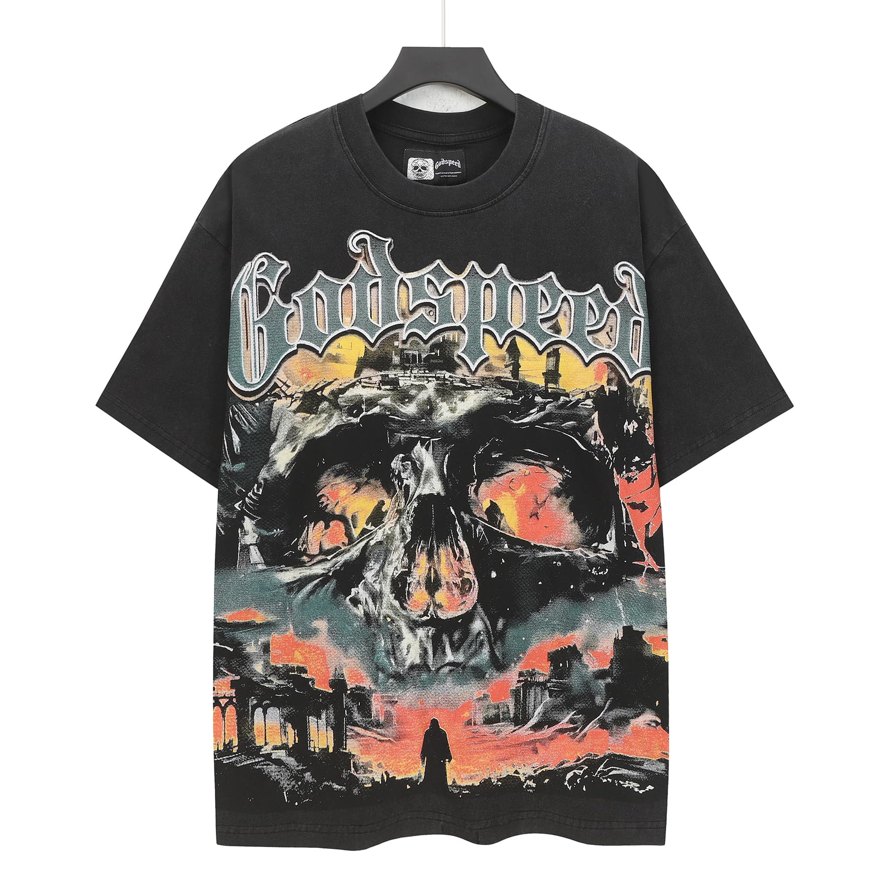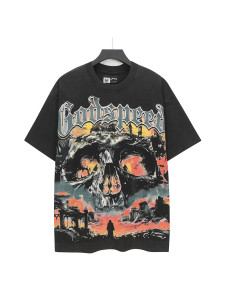 Home>Godspeed>T-shirt>[Buy Two Get One Free]Flame Skeleton Ruined City Print Washed Version Tee 2 colors 28576259