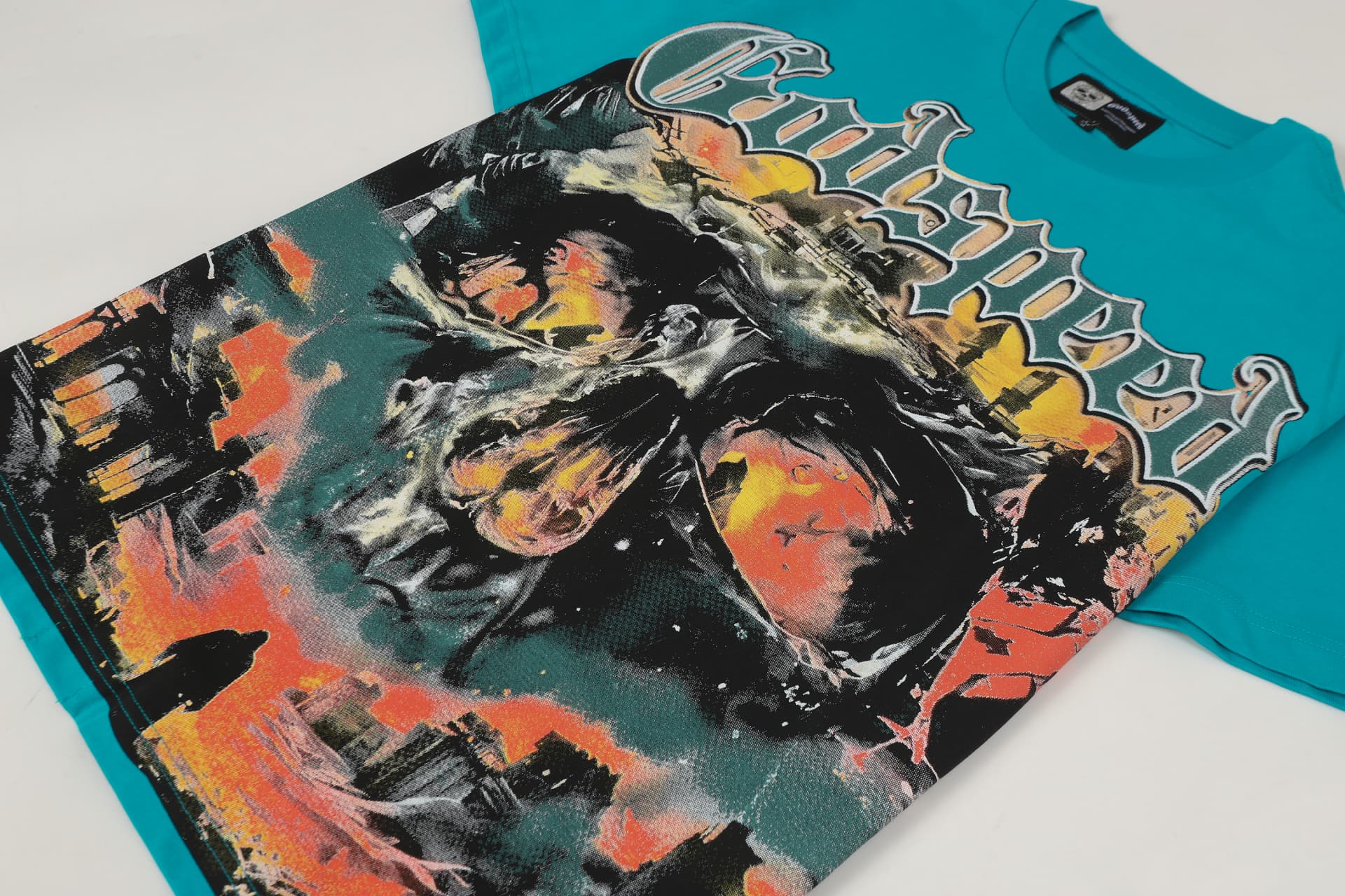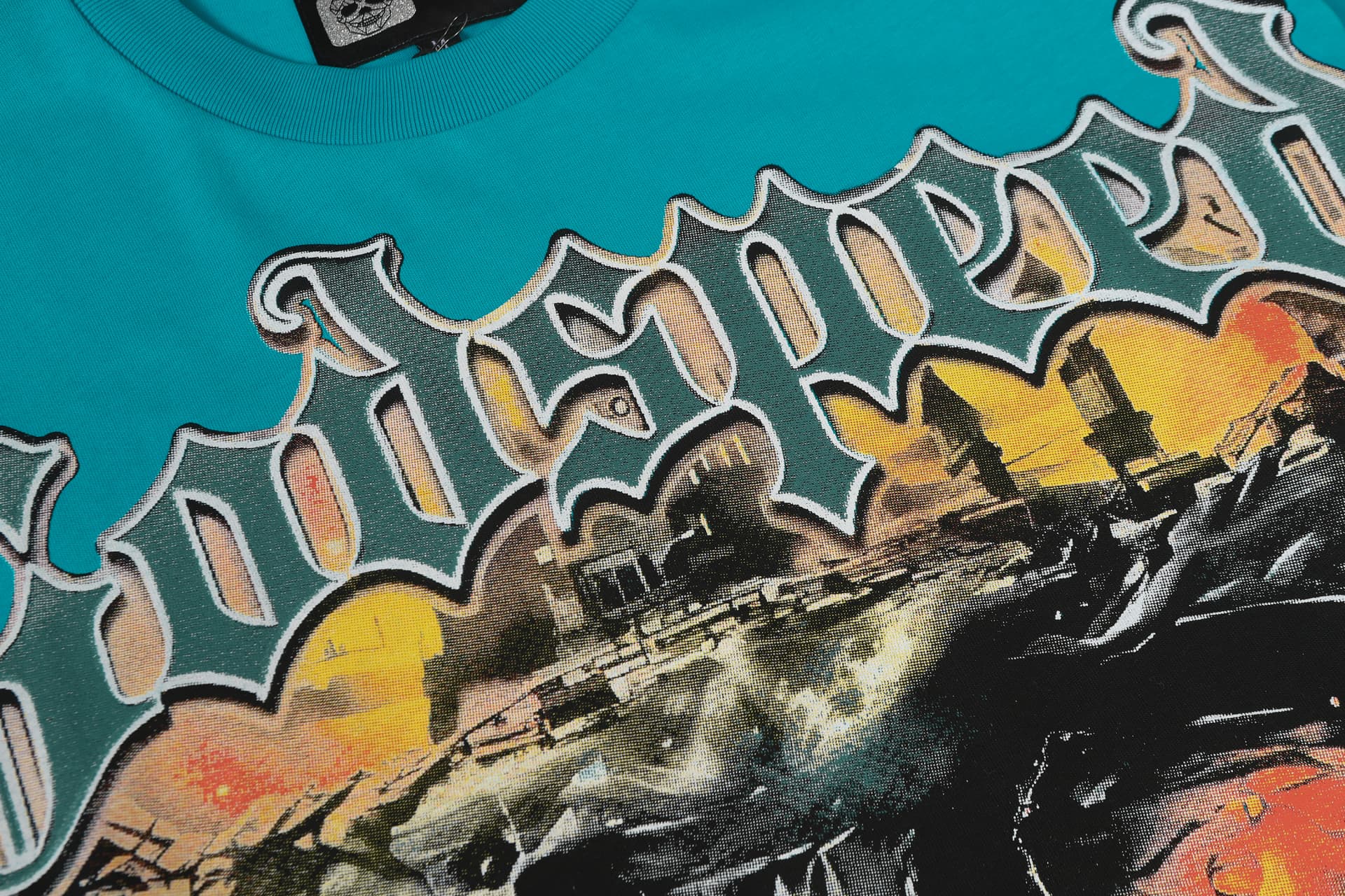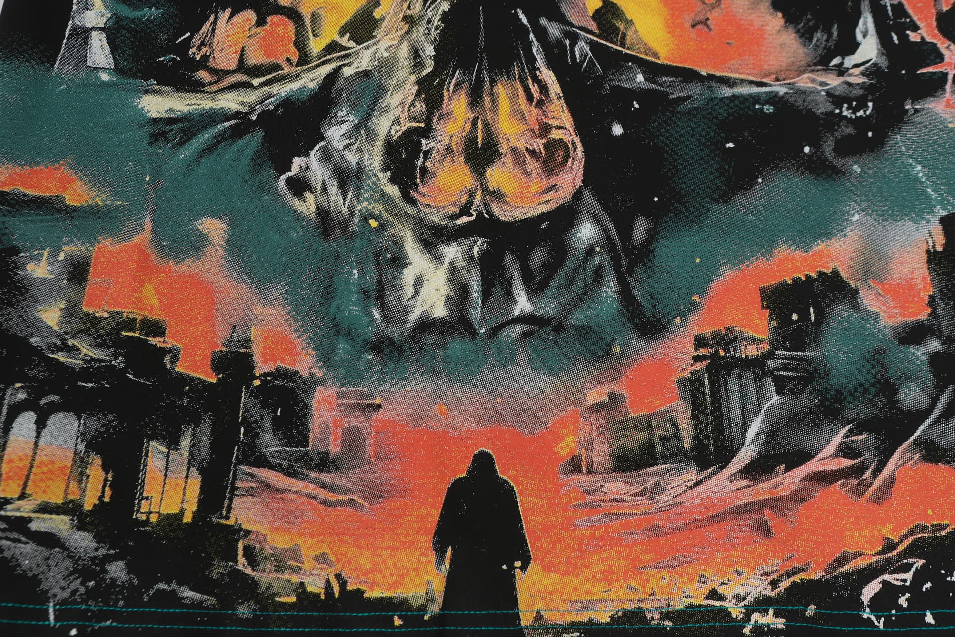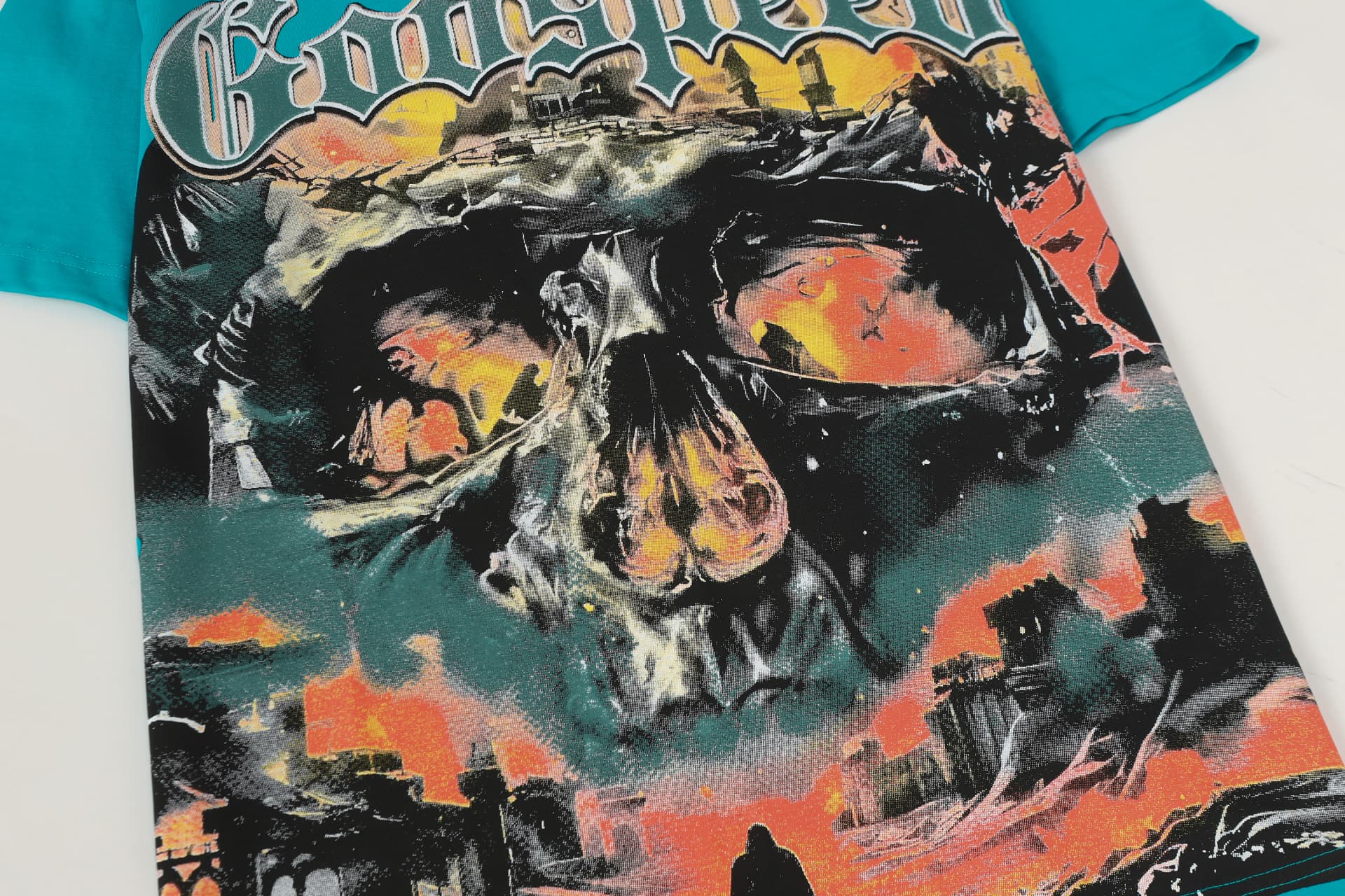 Home>Godspeed>T-shirt>[Buy Two Get One Free]Flame Skeleton Ruined City Print Washed Version Tee 2 colors 28576259
