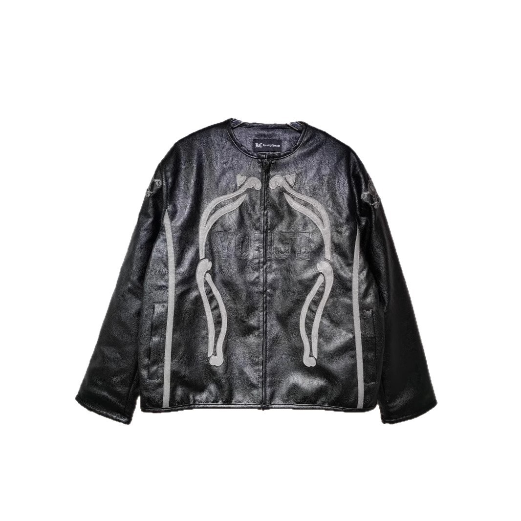 Home>Saint Michael/ Y2K/ Street style clothing>Jacket>Demon Skull Embroidery Motorcycle Leather Jacket 28630928