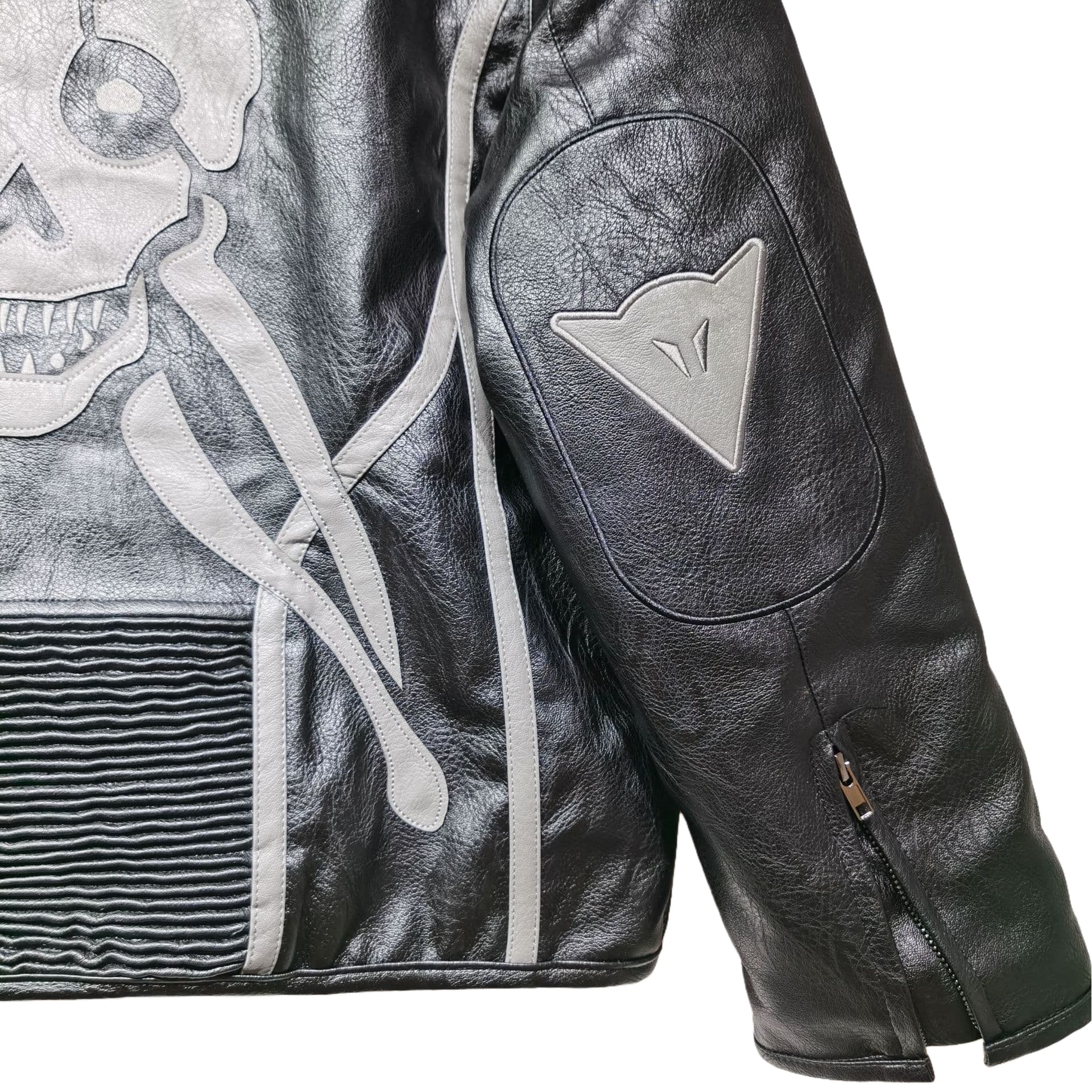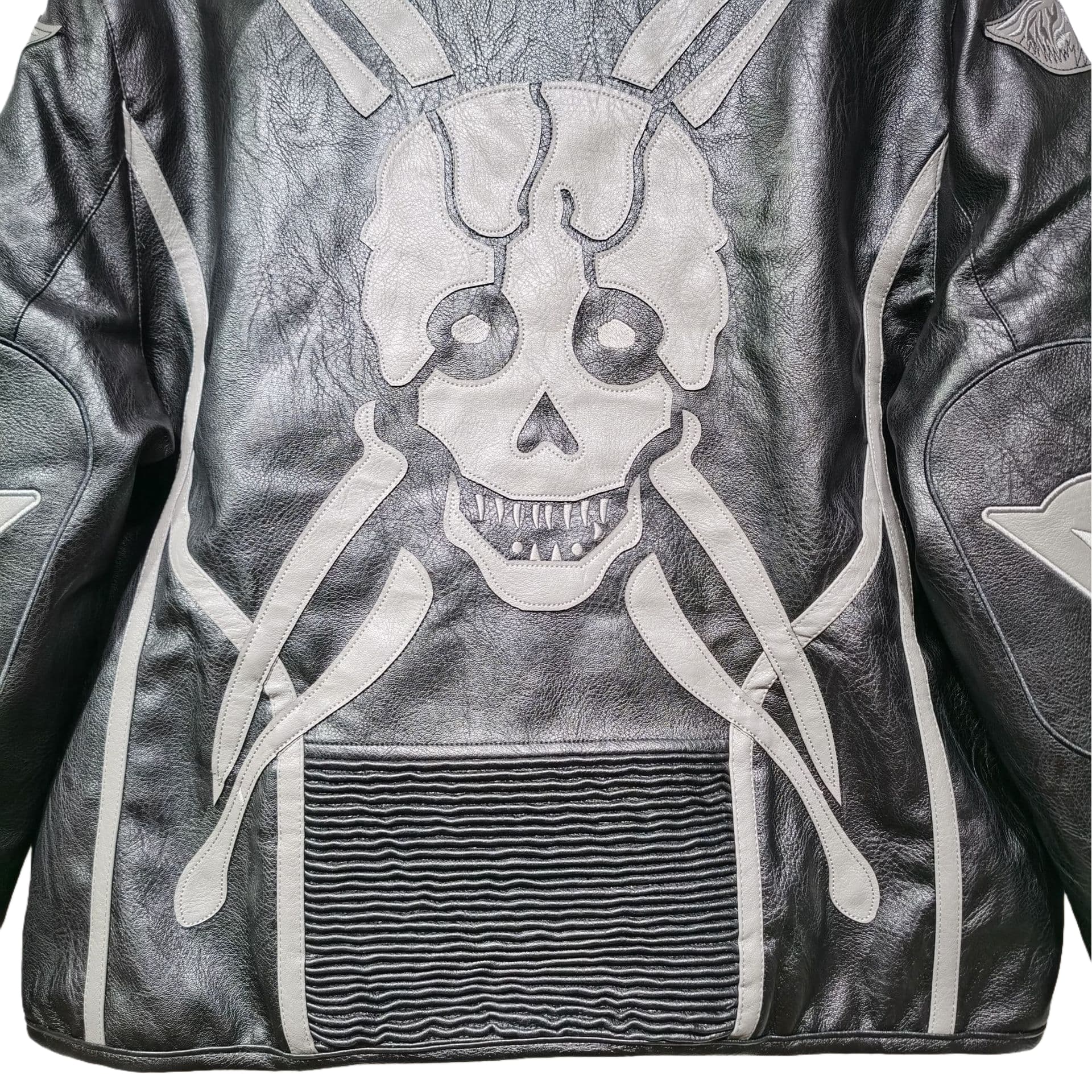 Demon Skull Embroidery Motorcycle Leather Jacket 28630928